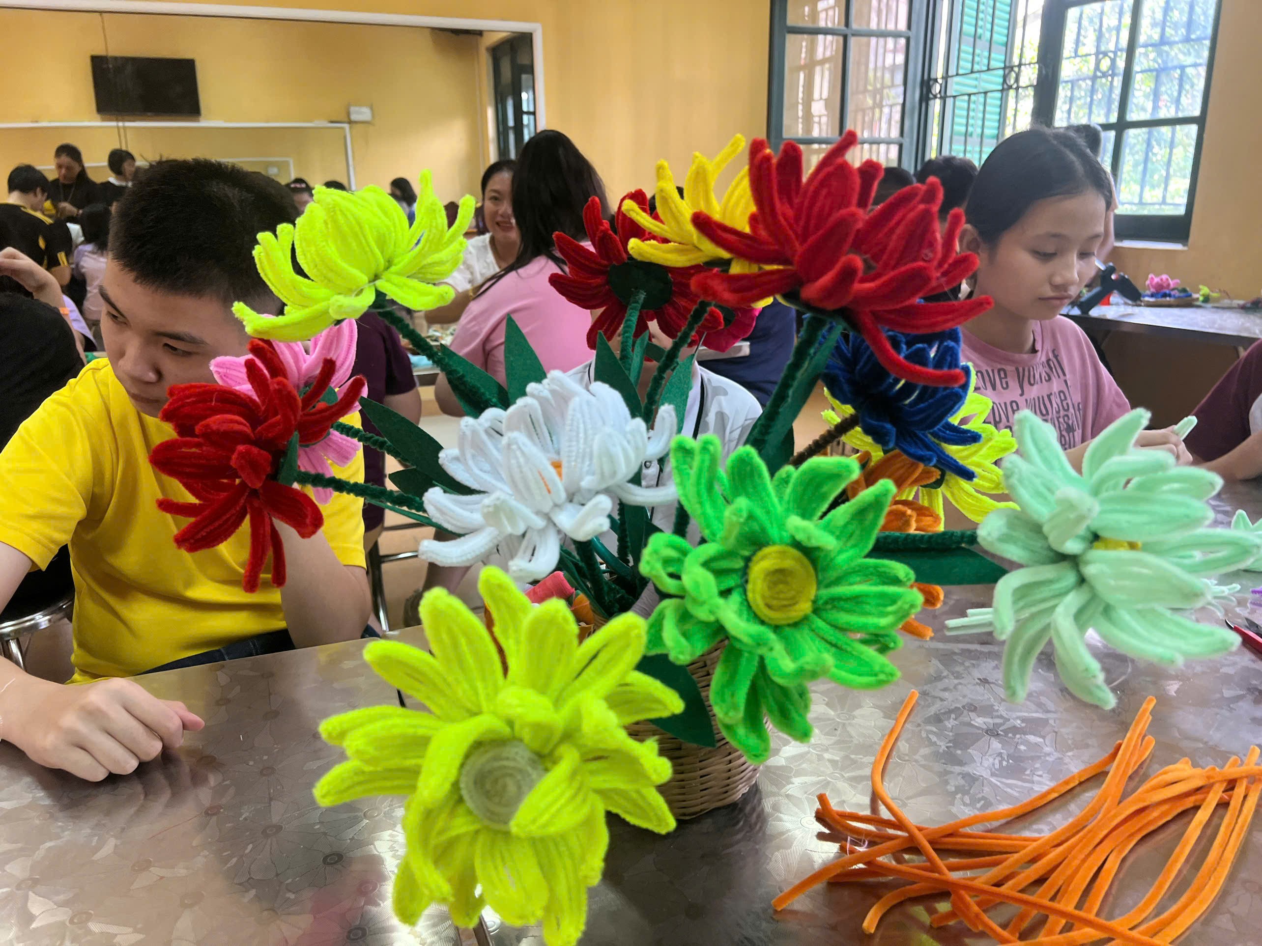 Trong cuộc sống, ai cũng có ước mơ được thể hiện khả năng và đóng góp điều gì đó có ý nghĩa cho xã hội. Đối với những em học sinh khuyết tật, điều đó đôi khi không dễ dàng. Nhưng chính trong khó khăn, nghị lực và óc sáng tạo của các em lại tỏa sáng rực rỡ hơn bao giờ hết — tiêu biểu là những sản phẩm hoa thủ công được làm từ dây kẽm, vải vụn, hạt nhựa hay giấy màu.